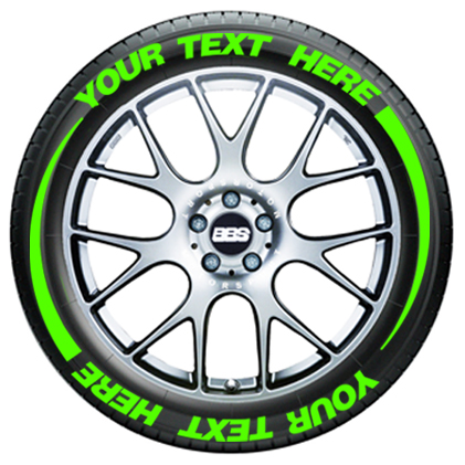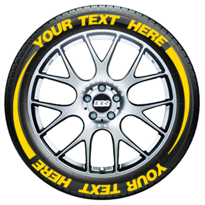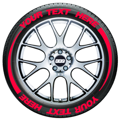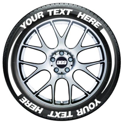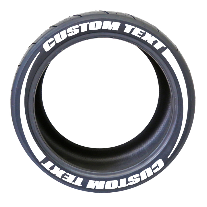 Add a custom look to your ride with these custom tire flare tire graphics. Customize the text on the top and the bottom to create the ultimate rolling graphic-double the space and character count! Each phrase can be up to 12 characters long and every kit will include 8 flares (2 per tire).