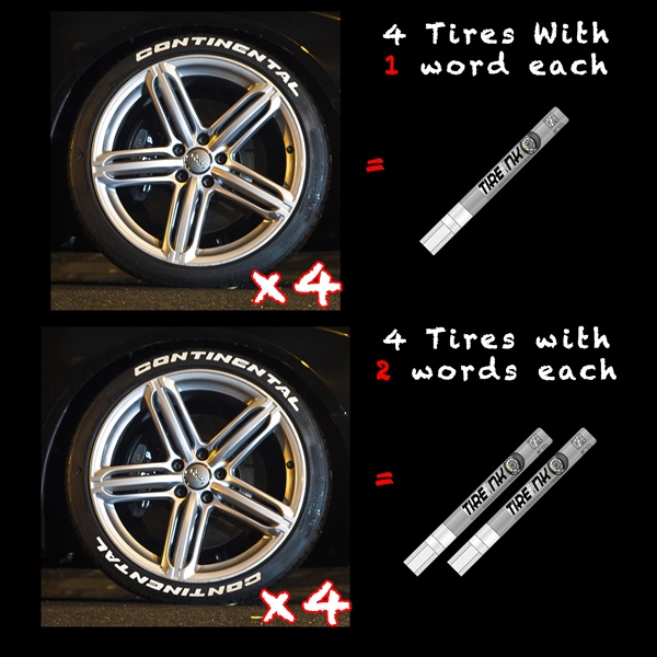 Tire Ink tire paint pens are the easy way to give your vehicle a ‘race’ look without the cost of our longer term, customizable products. Inspired by our love of high-performance racing, we have developed Tire Ink to achieve a colorful accent for your tires at an affordable price.
